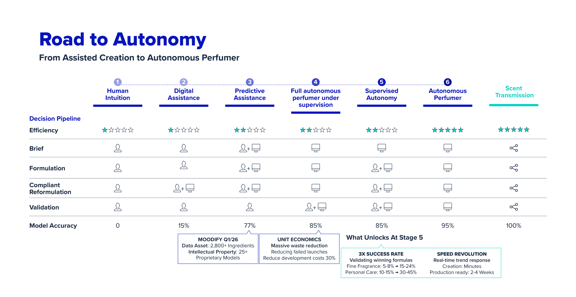 We have mapped the path from human-led creation to full olfactive autonomy, providing the industry with a roadmap for digital transformation.
